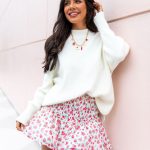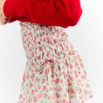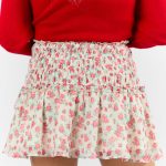 - Ivory and Red Drop Smocked Waist Mini Skort