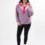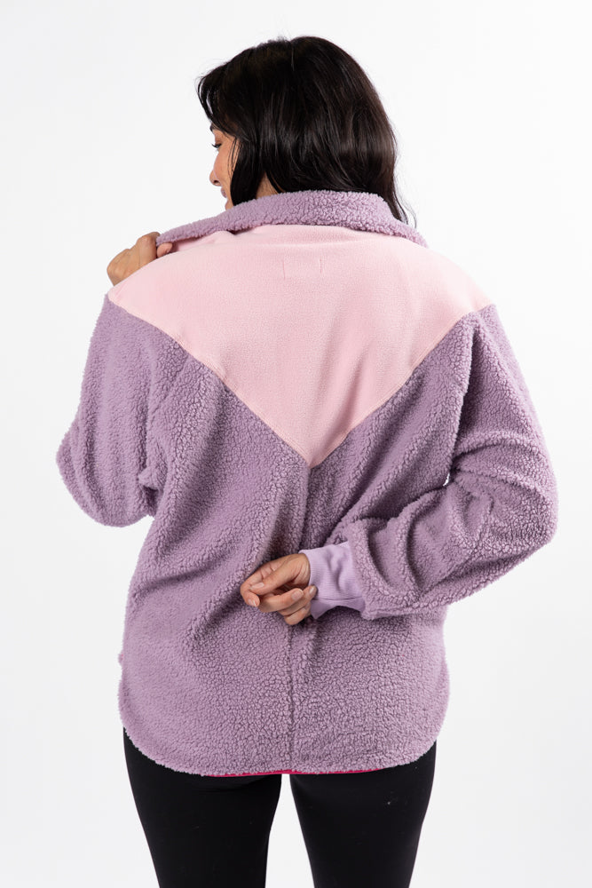- Purple Multi Colorblock Sherpa Pullover
