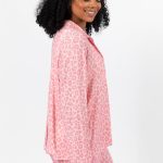 - Collared button-down v-neckline with long, wide sleeves and functional pocket